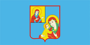 полотнище голубого цвета с соотношением сторон 1:2. В центре лицевой стороны
