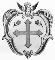 крест, сопровождаемый в верхних четвертях двумя розами. Нельзя исключить, что в