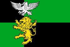 на четыре чередующиеся чёрные и зелёные части: чёрную и зелёную у древка,