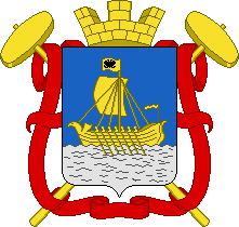 Описание: "В лазоревом щите на серебряной воде золотой древний