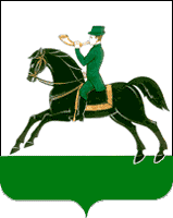 Описание: "В серебряном поле скачущий по зелёной земле на чёрном коне,