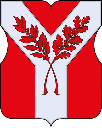вилообразный крест, обременённый червлёными лавровой и дубовой ветвью