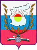 восходящего солнца; сноп из 13 колосьев пшеницы, связанных лентой, имеющей