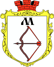 ним - чёрная буква "М". Щит обрамлён декоративным картушем и