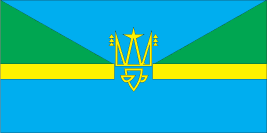 от высоты флага, с разрывом посредине, в котором жёлтый трезуб,