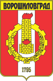 чёрным названием города. Щит окантован золотом".
