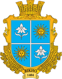 калины, внизу щита на золотой ленте чёрными буквами - «Вікно», под