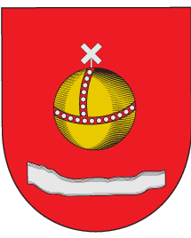 герба (реконструкция): "На красном щите золотой шар, увенчаный