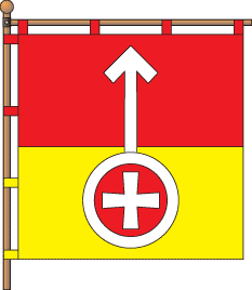 разделено на две равных горизонтальных части: красную и жёлтую.