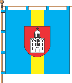 вертикальных полос - синей, жёлтой и синей (соотношение их ширин