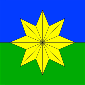 равновеликие полосы, - жёлтая гранёная восьмилучевая звезда".
